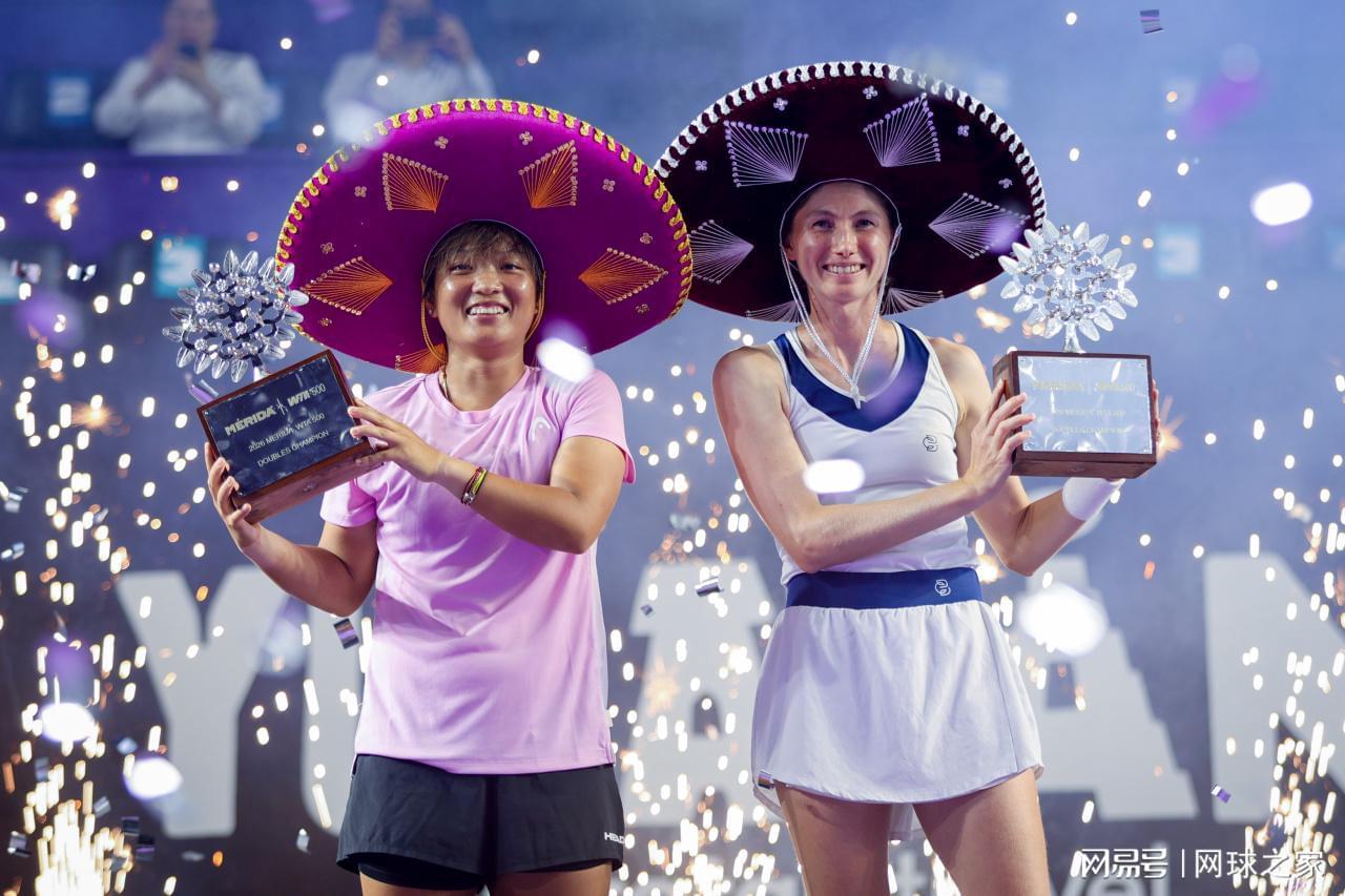 布克沙(右)搭档中国球员蒋欣玗(左)夺得WTA500梅里达站双打冠军